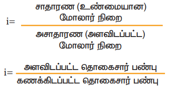 i = அளவிடப்பட்ட தொகைசார் பண்பு / கணக்கிடப்பட்ட தொகைசார் பண்பு