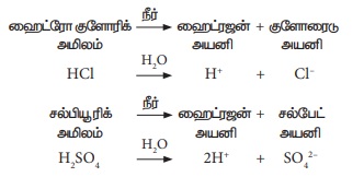 கரைக்கும் பொழுது ஹைட்ரஜன் அயனிகளை (H+) அவை கொடுக்கின்றன.
