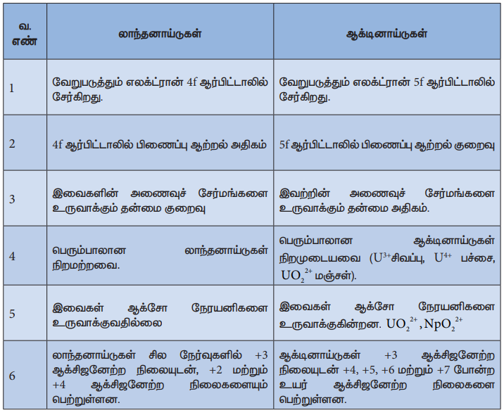 6. ஆக்டினாய்டுகள் +3 ஆக்சிஜனேற்ற நிலையுடன் +4, +5, +6 மற்றும் +7 போன்ற உயர் ஆக்சிஜனேற்ற நிலைகளை பெற்றுள்ளன.