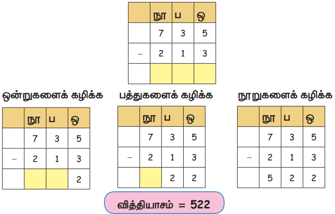 மூன்று இலக்க எண்களின் கழித்தல் (இனமாற்றமின்றி)