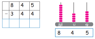 எடுத்துக்காட்டு : 845 லிருந்து 344 ஐக் கழிக்க.