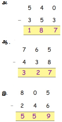 கீழ்க்கண்ட எண்களைக் கழிக்க