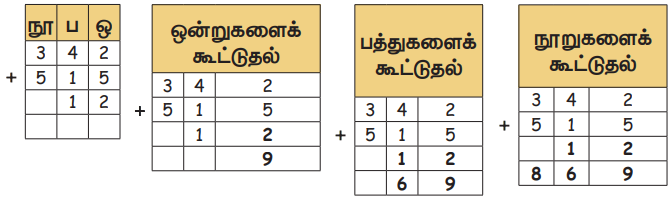 எடுத்துக்காட்டு : கூட்டுக 342 + 515 + 12