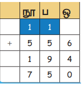 எடுத்துக்காட்டு : 556 மற்றும் 194 ஐக் கூட்டுக
