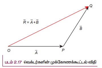 என்ற இரண்டு சுழியற்ற வெக்டர்கள் வரிசைப்படி ஒரு முக்கோணத்தின் அடுத்தடுத்த பக்கங்களாகக் கருதப்பட்டால், அவற்றின் தொகுபயன், எதிர்வரிசையில் எடுக்கப்பட்ட அம்முக்கோணத்தின் மூன்றாவது பக்கத்தினால் குறிப்பிடப்படும். இது படம் 2.17 யில் காட்டப்பட்டுள்ளது. இது பின்வருமாறு விளக்கப்பட்டுள்ளது.