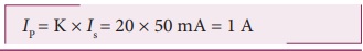 சுற்றுகளின் எண்ணிக்கை மற்றும் முதன்மை மின்னோட்டம் ஆகியவற்றைக் காண்க.