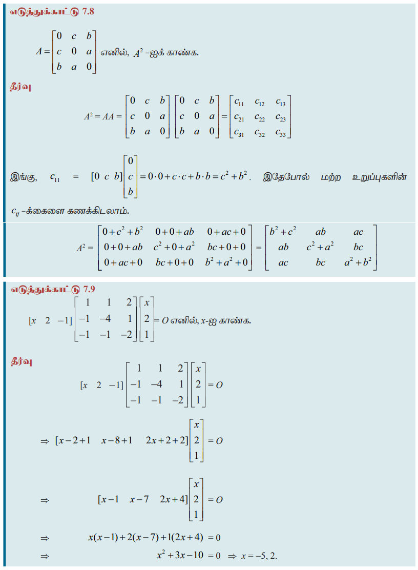 விளக்க எடுத்துக்காட்டு - அணிகளின் மீதான இயற்கணிதச் செயல்முறைகள் (Algebraic Operations on Matrices) | 11th Mathematics : UNIT 7 : Matrices and Determinants