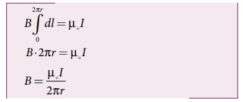 மின்னோட்டத்தைக் குறிக்கும். சமச்சீரின் விளைவாக ஆம்பியரின் வளையம் முழுவதும் காந்தப்புலத்தின்