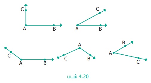 படம் 4.23 இல், இரண்டு கோணங்கள் குறிக்கப்பட்டுள்ளன. ∠BAC மற்றும் ∠ABC ஆகிய கோண அளவுகள் சமமில்லை, மேலும் அவைகள் வெவ்வேறு உச்சிப் புள்ளிகளையும், பக்கங்களையும் பெற்றுள்ளன.