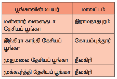 சரணாலயங்கள் மற்றும் தேசியப் பூங்காக்கள் குறித்து அறிந்து கொள்ளல்.
