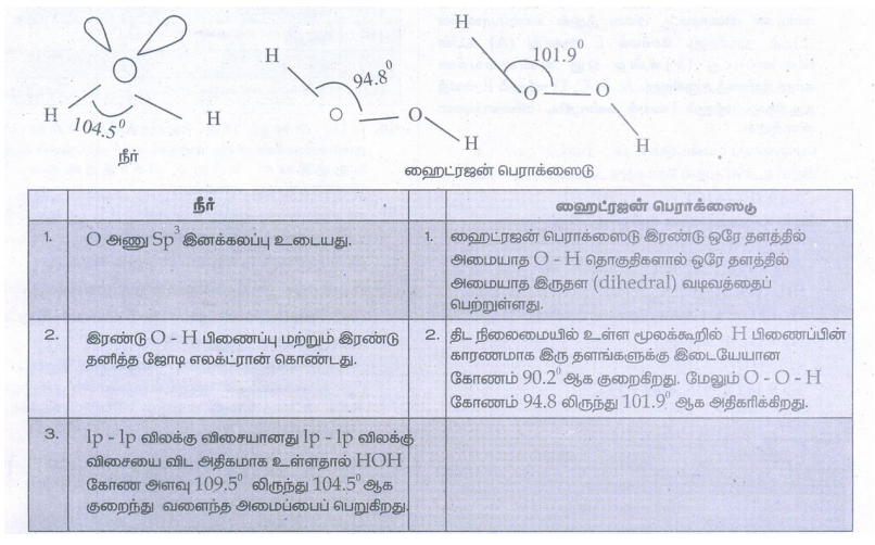 44. H2O மற்றும் H2O2ன் வடிவமைப்புகளை ஒப்பிடுக.