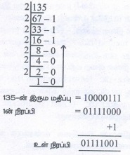 விடை: ஒரு எண்ணின் 1ன் நிரப்பைக் காண கீழ்க்காணும் வழிமுறைகள் பின்பற்றப்பட வேண்டும்.