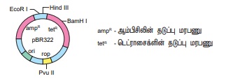 * 322 = அவர்களுடைய ஆய்வகத்தில் உருவாக்கப் பட்ட பிளாஸ்மிட்டின் எண்ணிக்கை யாகும். இதில் காணப்படுவன