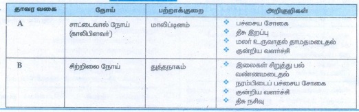 8. தாவரம் A சாட்டைவால் நோய், தாவரம் B சிற்றிலை நோய் அறிகுறிகள் கொண்டுள்ளது. AB யின் கனிமக் குறைபாட்டினைக் கண்டறிக.