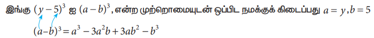 (a + b)3 = a3 + 3a2 b + 3ab2 + b3 (a, b மதிப்புகளைப் பிரதியிட)