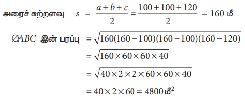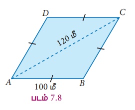 ஆகவே, சாய்சதுர நிலம் ABCD இன் பரப்பு = 2 × ∅ABC இன் பரப்பு = 2 × 4800 = 9600 மீ2