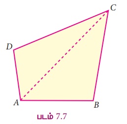 நாற்கரம் ABCD இன் பரப்பு = முக்கோணம் ABC இன் பரப்பு + முக்கோணம் ACD இன் பரப்பு.