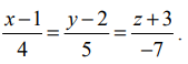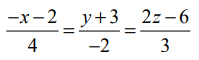 எனவே, தேவையான நேர்க்கோடு (–4,2,−3) என்ற புள்ளி வழிச் செல்வதுடன்