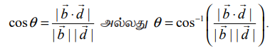 (iii) கொடுக்கப்பட்ட இரு நேர்க்கோடுகளின் திசைக்கொசைன்கள் l1,m1,n1 மற்றும் l2,m2,n2 எனில், கொடுக்கப்பட்ட கோடுகளுக்கு இடைப்பட்ட கோணம்