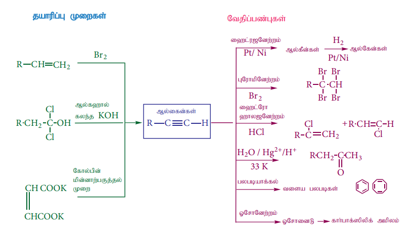 ● ஆல்கீன்களிலும் எலக்ட்ரான் அடர்வு மூலக்கூறு உள்ளது. ஆனால் எலக்ட்ரான் சேர்க்கை வினையின் போது பிளவுறும் ஒரே ஒரு வலிமை குறைந்த π -பிணைப்பு மற்றும் இரண்டு வலிமையான σ-பிணைப்பு உருவாகின்றன.