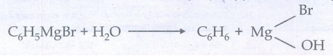 பினைல் மெக்னீசியம் அயோடைடு நீராற்பகுத்தலில் பென்சீன் தருகிறது.
