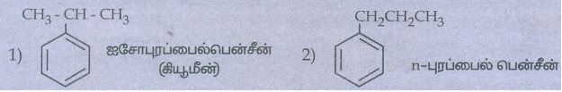 23) C9H12 என்ற மூலக்கூறு வாய்பாடு உடைய ஒற்றை பதிலிடப்பட்ட அரோமேட்டிக் பென்சீனாய்டு சேர்மத்திற்கு சாத்தியமான அனைத்து மாற்றியங்களையும் எழுதுக.