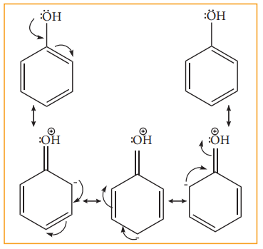 எனவே –OH தொகுதியானது ஒரு கிளர்வுறுத்தும் ஆர்த்தோ மற்றும் பாரா ஆற்றுப்படுத்தும் தொகுதியாகும்.