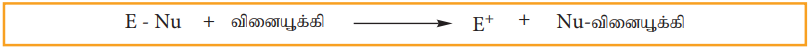 (ஊ) எலக்ட்ரான் கவர்பொருள் பதிலீட்டு வினை :