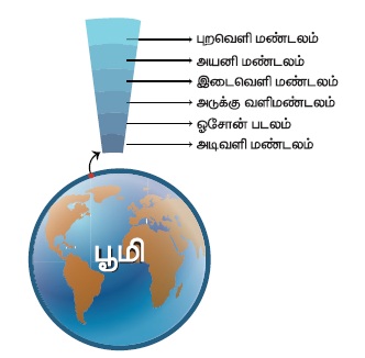(Mesosphere), அயனி மண்டலம் (lonosphere), புறவளி மண்டலம் (Exosphere).