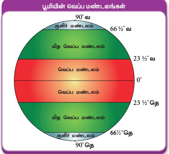 முதல் 661/2°வடக்கு அட்சமும் 231 முதல் 661 தெற்கு அட்சமும் மிதவெப்ப மண்டலமாகும்.
