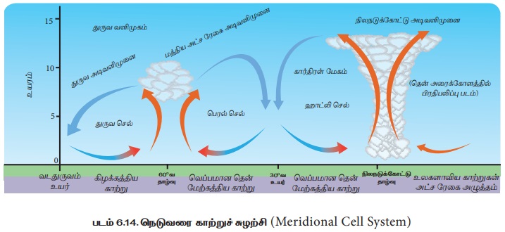 வட தென் துருவ உயர் அழுத்தப் பட்டையில் இருந்து வரும் துருவ கிழக்கத்திய காற்று மற்றும் துணை துருவ குறைவழுத்தப் பட்டை ஆகியவை இணைந்த பகுதியை 'துருவ செல்' (Polar Cell) என அழைக்கிறோம். (படம் 6.14)