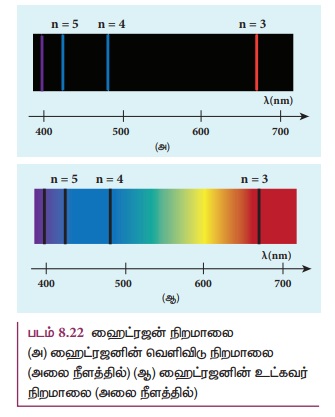 தொகுதி I, அலகு - 5) ஹைட்ரஜனின் வெளிவிடு மற்றும் உட்கவர் நிறமாலைகள் படம் 8.22 (அ)