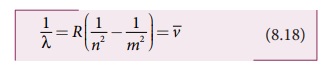 (8.18)ல் பிரதியிட, லைமன் வரிசையிலுள்ள நிறமாலை வரிகளின் அலை எண் அல்லது அலைநீளங்களைக்