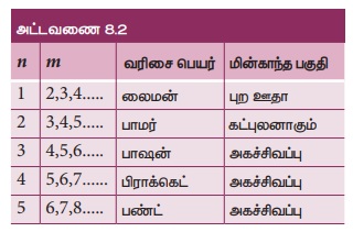 n = 5 மற்றும் m=6,7,8 என சமன்பாட (8.18)ல்