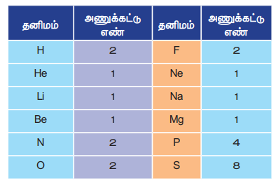 அட்டவணை 3.6 சில தனிமங்களின் அணுக்கட்டு எண்கள்