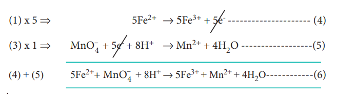 MnO-4 + 5e- → Mn2+ -------------------- (2)