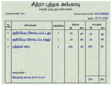 ● அடக்க விலை, விற்ற விலை, குறித்த விலை மற்றும் தள்ளுபடி ஆகியவற்றைக் கணக்கிடல்.