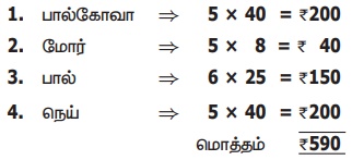 (ii) ஒன்று ₹8 வீதம் மோர் பாக்கெட்டுகள் 5
