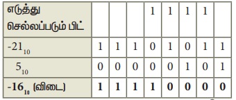 எடுத்துக்காட்டு: இருநிலை எண் வடிவில் கூட்டுக: (-21)10 + (5)10