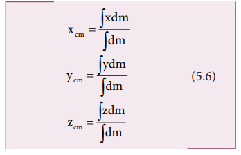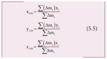 இதைப்போன்றே (படம் 5.2 இல் காட்டியுள்ளபடி) பரவலாய் அமைந்துள்ள புள்ளி நிறைகளின் நிறை மையத்திற்கான y, z ஆயத்தொலைவுகளையும் நாம் கண்டறியலாம்.