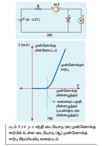 படம் 9.14 p-n சந்தி டையோடு (அ) முன்னோக்கு