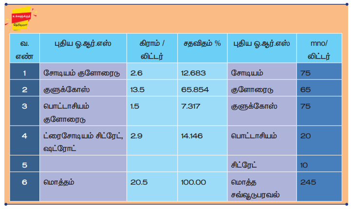 UNICEF / WHO விதிமுறைகளின் படி O.R.S பின்வருமாறு தயார் செய்ய வேண்டும்