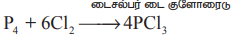 ஹைட்ரஜன் மீது நாட்டம் : டர்பென்டைனுடன் சேர்த்து எரிக்கும் போது கார்பன் மற்றும் ஹைட்ரோ குளோரிக் அமிலத்தை தருகிறது.