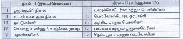 விடை : இ) I-iii, II-ii, III-i, IV-iv