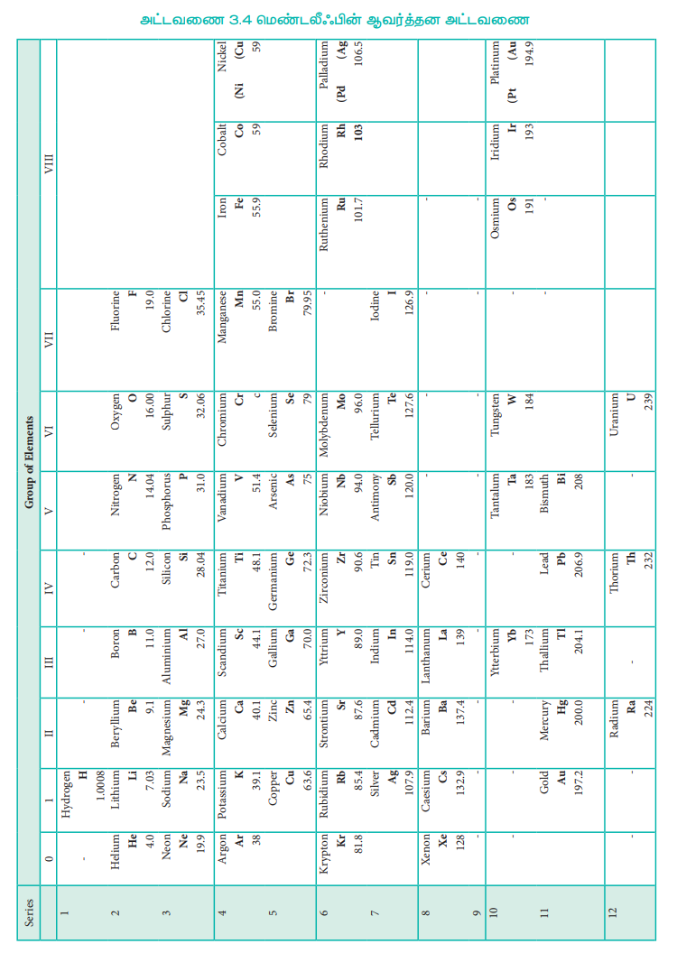 அட்டவணை 3.4 மெண்டலீஃபின் ஆவர்த்தன அட்டவணை