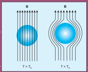 (Tc) க்கு கீழே, மீக்கடத்திகள் ஒரு முழுமையான டயாகாந்தப் பொருட்களைப் போன்று