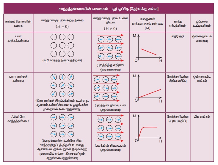 iv) காந்த ஏற்புத்திறன் வெப்பநிலைக்குஎதிர்த்தகவாகும்.