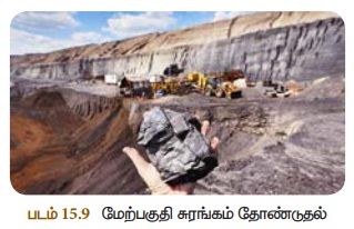 இருக்குமானால் மேற்பகுதி மண் வெளியேற்றப்பட்டு நிலக்கரி தோண்டி எடுக்கப்படுகிறது. இது