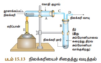 மற்றும் நிலக்கரிவாயு ஆகியவை உருவாகின்றன. இரண்டாவது சோதனைக் குழாயில் கரித்தார்