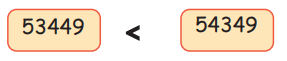 இரண்டு எண்களிலும் ஐந்து இலக்கங்கள் உள்ளது மற்றும் பத்தாயிரம் இடத்தில் நாம் ஒப்பிட்டு பார்க்கும் போது பத்தாயிரம் இடம் சமமாக உள்ளது. எனவே ஆயிரம் இடத்தில் இருக்கும் எண்ணை ஒப்பிட வேண்டும்.